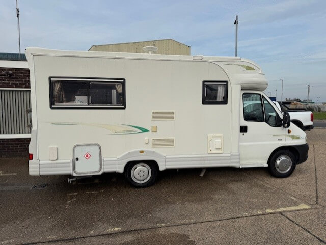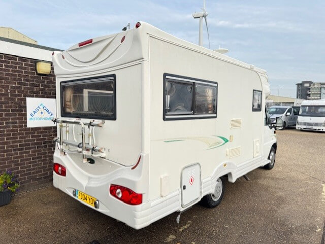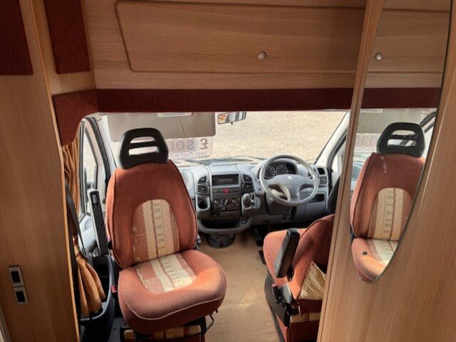 Blinds and Flyscreens, Cab Central Locking, Cassette Toilet, Corner Steadies, Cycle Rack, Double Glazed Windows, Electric Mirrors, Electric Retractable Step, Electric Windows, Fresh and Waste Water Tanks, Fridge(12v/240v/Gas), Diesel Heater, Heki Rooflight, Hob, Immobilizer, Leisure Battery and Charger, Mains Hook Up 240v, Oven, Grill, Power Steering, Radio CD, Rear Steadies, Removable Carpets, Shower, Solar Panel, Spare Wheel, Swivel Front Passenger Seat, TV Aerial, Water Heater Gas/240v, Wind Out Sunblind