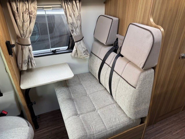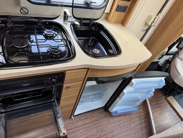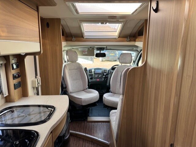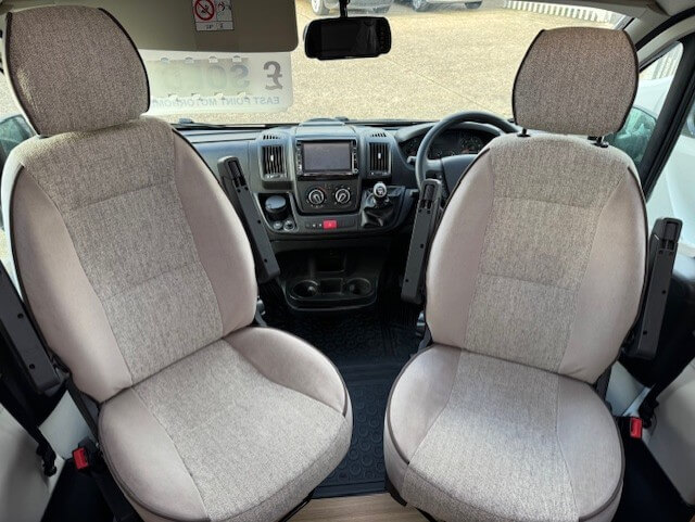A.B.S., Blinds and Flyscreens, Cab Air Conditioning, Cab Blinds, Cab Central Locking, Cassette Toilet, Cruise Control, Cycle Rack, Double Glazed Windows, Drivers and Passengers Air Bag, Electric Mirrors, Electric Windows, Fresh and Waste Water Tanks, Fridge(12v/240v/Gas), Whale EH Heater, Heki Rooflight, Hob, Immobilizer, Leisure Battery and Charger, Mains Hook Up 240v, Oven/Grill, Power Steering, Radio, Rear Seat Belts, Removable Carpets, Reverse Camera, Spare Wheel, Swivel Front Seats, TV Aerial, Water Heater Gas/240v.