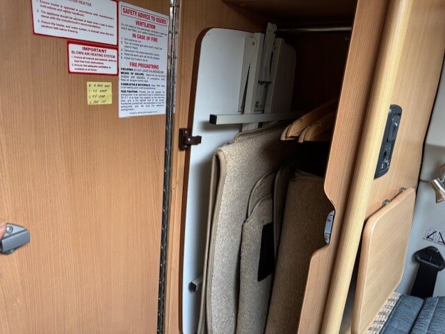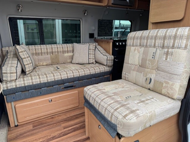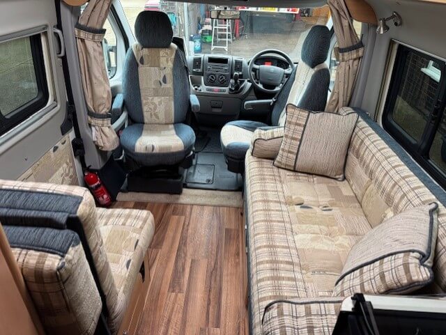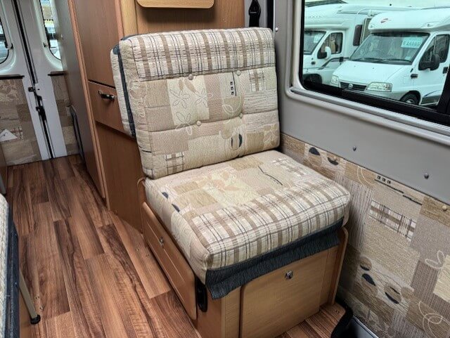 A.B.S., Blinds and Flyscreens, Cab Air Conditioning, Central Locking, Cassette Toilet, Cruise Control, Cycle Rack, Drivers and Passengers Air Bag, Electric Mirrors, Retractable Step, Electric Windows, Fresh and Waste Water Tanks, Fridge(12v/240v/Gas), Diesel Heater, Heki Rooflight, Hob, Immobilizer, Leisure Battery and Charger, Mains Hook Up 240v, Microwave, Oven, Outside BBQ Point, Grill, Power Steering, Radio CD, Rear Seat Belt, Removable Carpets, Shower, Spare Wheel, Swivel Front Seats, Traction Control, TV Aerial, Water Heater Gas/240v, Wind Out Sunblind