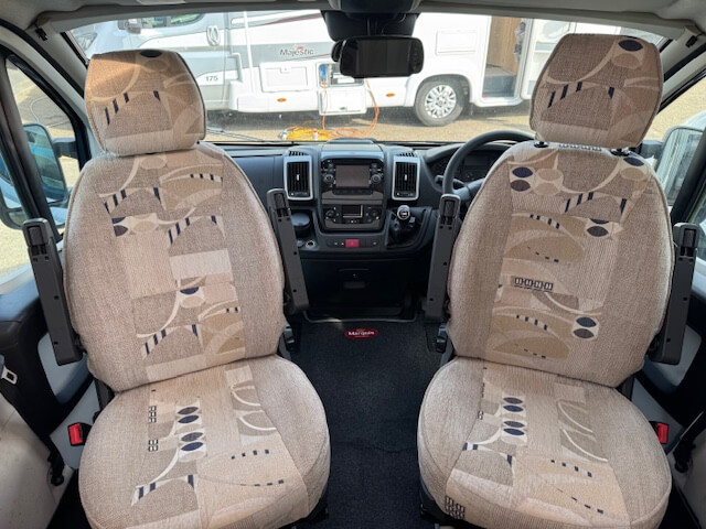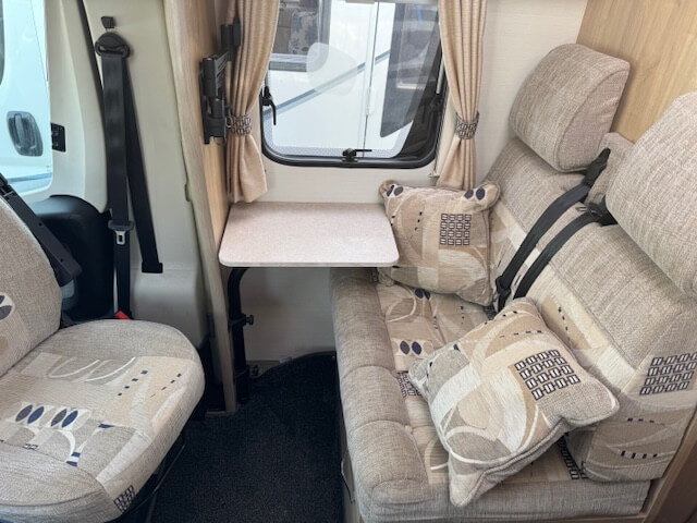 A.B.S., Blinds and Flyscreens, Cab Air Conditioning, Cab Blinds, Cab Central Locking, Cassette Toilet, Cruise Control, Double Glazed Windows, Drivers and Passengers Air Bag, Electric Mirrors, Electric Windows, Fresh and Waste Water Tanks, Fridge(12v/240v/Gas), Whale EH Heater, Heki Rooflight, Hob, Immobilizer, Leisure Battery and Charger, Mains Hook Up 240v, Microwave, Oven/Grill, Power Steering, Radio/CD, Rear Seat Belts, Removable Carpets, Reverse Camera, Spare Wheel, Swivel Front Seats, TV Aerial, Water Heater Gas/240v, Wind Out Sunblind.