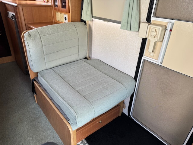 Blinds and Flyscreens, Cassette Toilet, Double Glazed Windows, Retractable Step, Fresh and Waste Water Tanks, Fridge(12v/240v/Gas), Truma EH Heater, Heki Rooflight, Hob, Leisure Battery and Charger, Mains Hook Up 240v, Oven, Grill, Power Steering, Radio, Rear Seat Belt, Reverse Camera, Shower, Spare Wheel, Swivel Front Seat, TV Aerial, Water Heater Gas/240v, Wind Out Sunblind